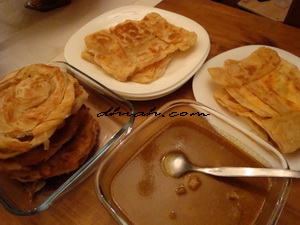 Tak pernah seumur hidupku aku buat roti canai. Yelah, perlu apa bersusah payah buat kalau dah kedai roti canai bersepah di sana sini, order dan bayar aje. Namun, bila dah terdampar jauh di kota Valladolid yang apa pun takde ini, terpaksalah aku buat sendiri bila rasa nak makan apa-apa, termasuklah bila meroyan nak makan roti canai. Pertama kali buat, ermm hasilnya agak dramatik, sekeluarga termasuk aku yang kebuluran dari pagi, terpaksa makan bola besbol. Roti canaiku tak boleh ditebar maka terpaksa digoreng bulat-bulat yang kerasnya ermm, macam bola besbol, itu pasal di panggil bola besbol. Cubaan kali kedua iaitu pada hari dialog di atas berlangsung, berakhir dengan kami sekeluarga terpaksa makan kulit karipap selama seminggu, yelah sekali uli sekilo. Huhu. Namun aku tak putus asa, aku cuba lagi kali ketiga. Alhamdulillah, walaupun tak juga jadi roti canai, tapi ok sikitlah bila ia menjadi kueh cakoi yang ermm agak keras, hehe. Tetapi, betullah kata orang, nak seribu daya, usaha tangga kejayaan. Cubaan kali keempat mendatangkan hasil bila akhirnya dapat juga kami sekeluarga memakan roti canai yang boleh tahan enaknya hasil air tanganku sendiri di kota Valladolid, Sepanyol. Dan yang paling manis, sah-sahlah aku dah cipta 2 rekod dunia iaitu orang Melayu pertama di dunia buat roti canai di Valladolid dan sebelumnya orang Melayu pertama di dunia buat roti canai tak jadi di Valladolid! Bravooo….