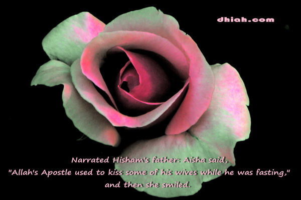 ‘A’isha (Allah be pleased with her) said that the Messenger of Allah (may peace be upon him) kissed one of his wives while he was fasting, and then she (‘A’isha) smiled (as she narrated). (Sahih Muslim)